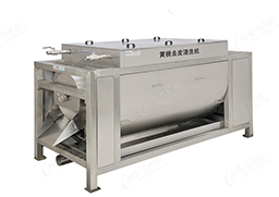 尼為機械翻瓣機上下尼龍毛刷輥筒由一臺減速電機以鏈傳動形式帶動,上下輥筒間隙可調,以適應不同大小桃瓣;